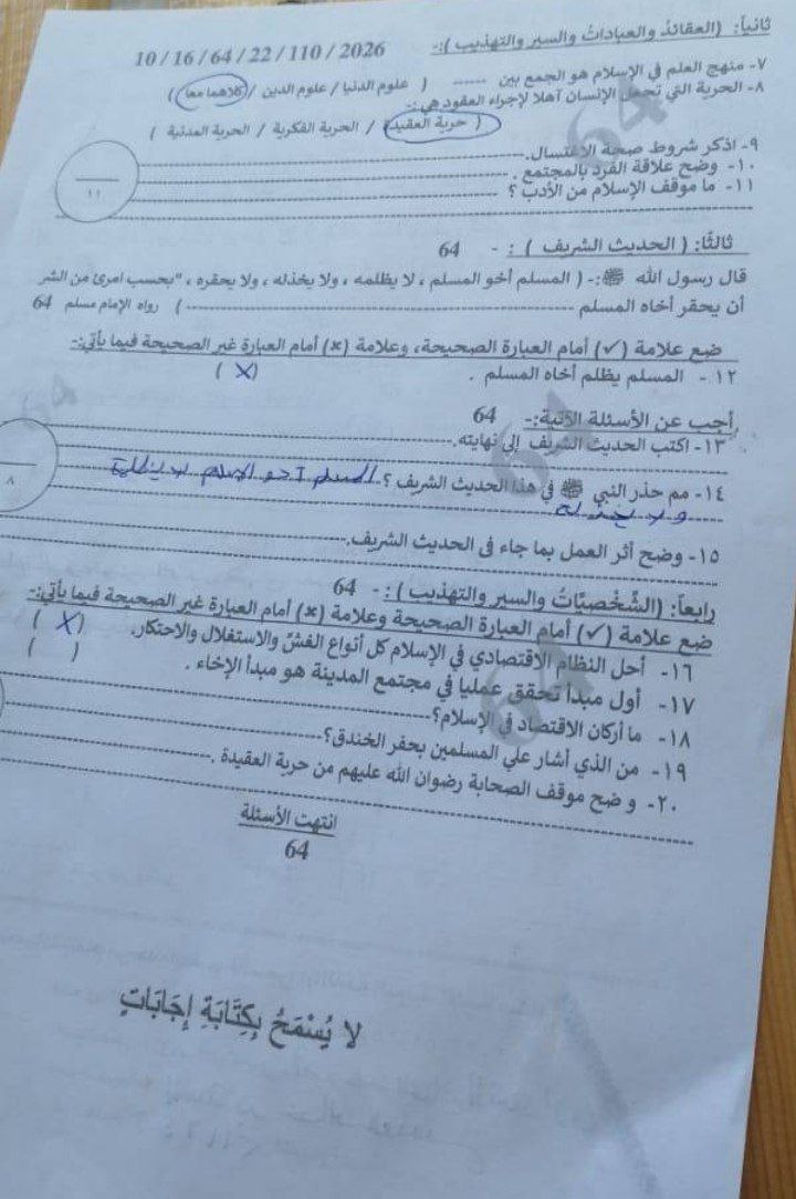 في تحدي لقرارات وزارة التربية والتعليم والتعليم الفني، نشرت مجموعات الغش الإلكتروني إجابة امتحان مادة التربية الدينية للشهادة الإعدادية الترم الأول بالإجابات بالدقهلية في اليوم الأول لانطلاق امتحانات الشهادة الإعدادية الترم الأول 2026 بمحافظة الدقهلية.