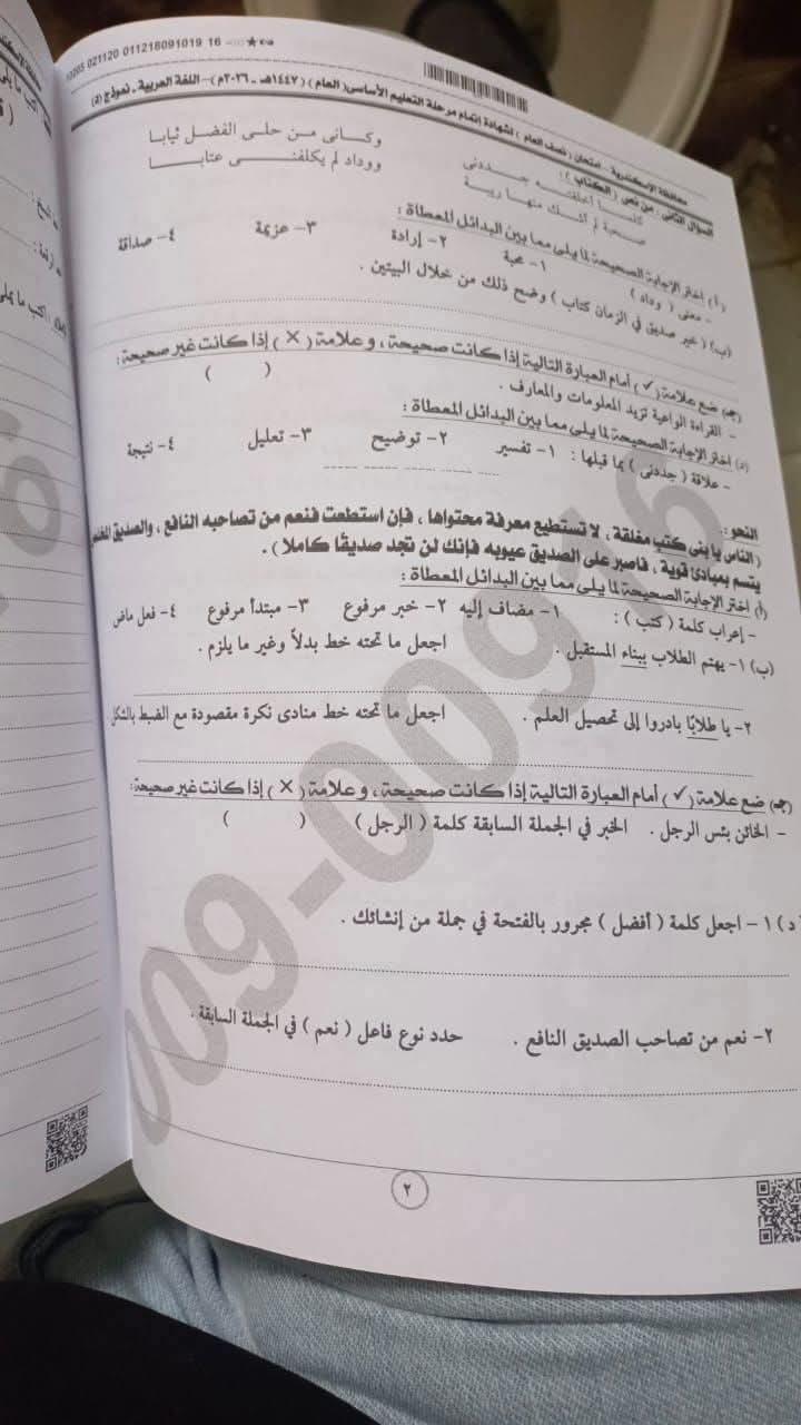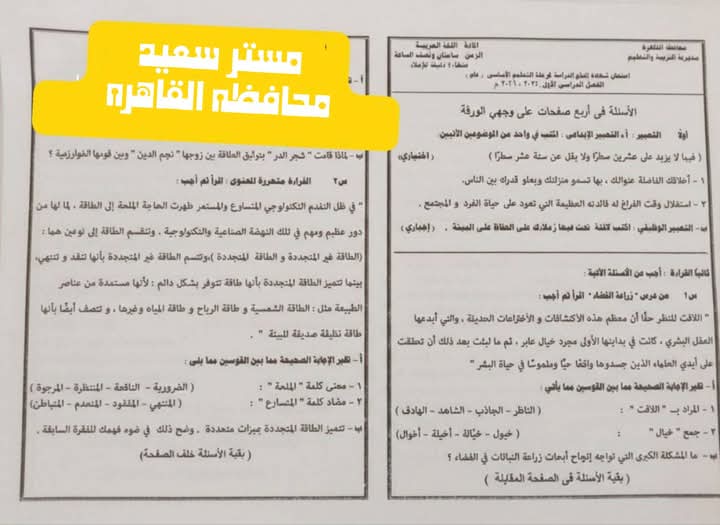 - تسريب امتحان اللغة العربية للشهادة الإعدادية 2026