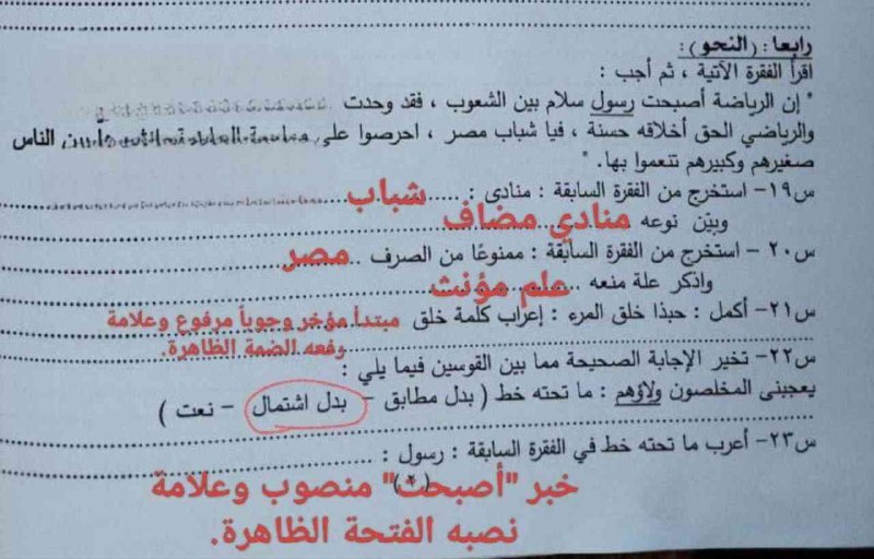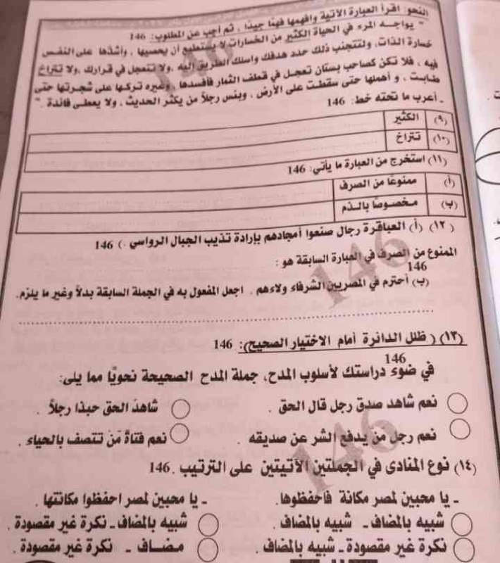 - إجابة امتحان اللغة العربية الشهادة الإعدادية