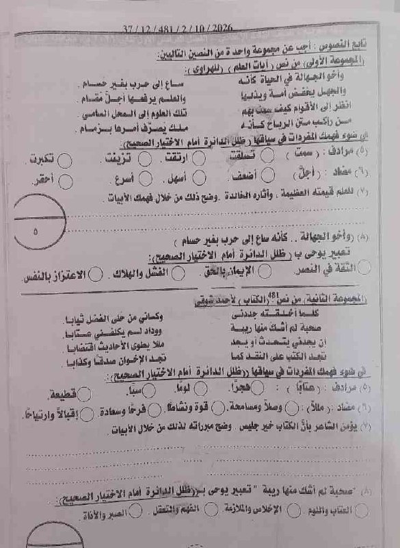 الكثير من الطلاب وأولياء الامور للتعرف على نموذج الامتحان وما قدمه ابنائه في امتحانات الشهادة الإعدادية 2026 الترم الأول.