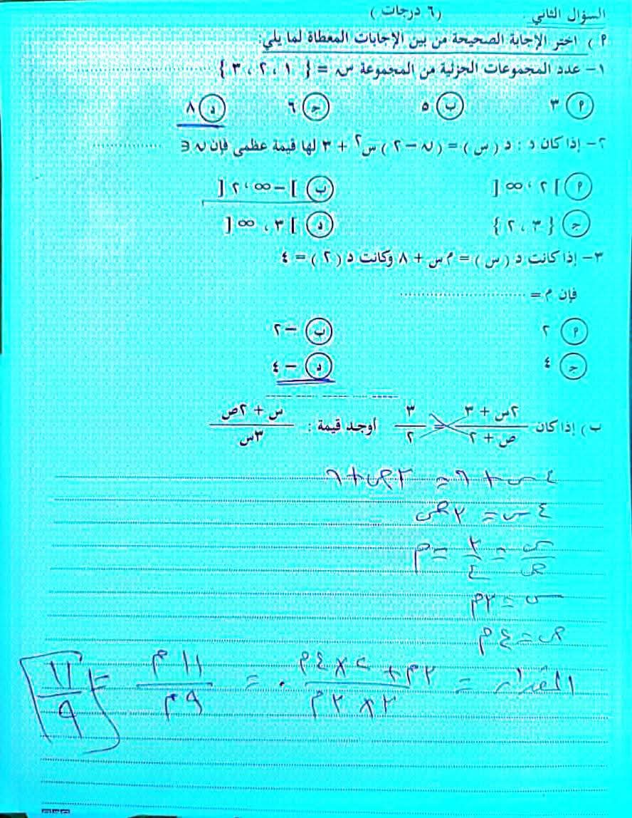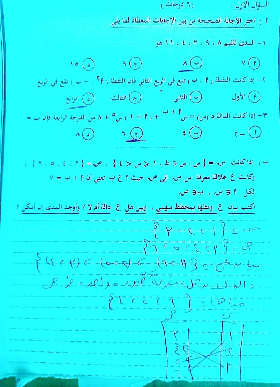 - حل امتحان الجبر