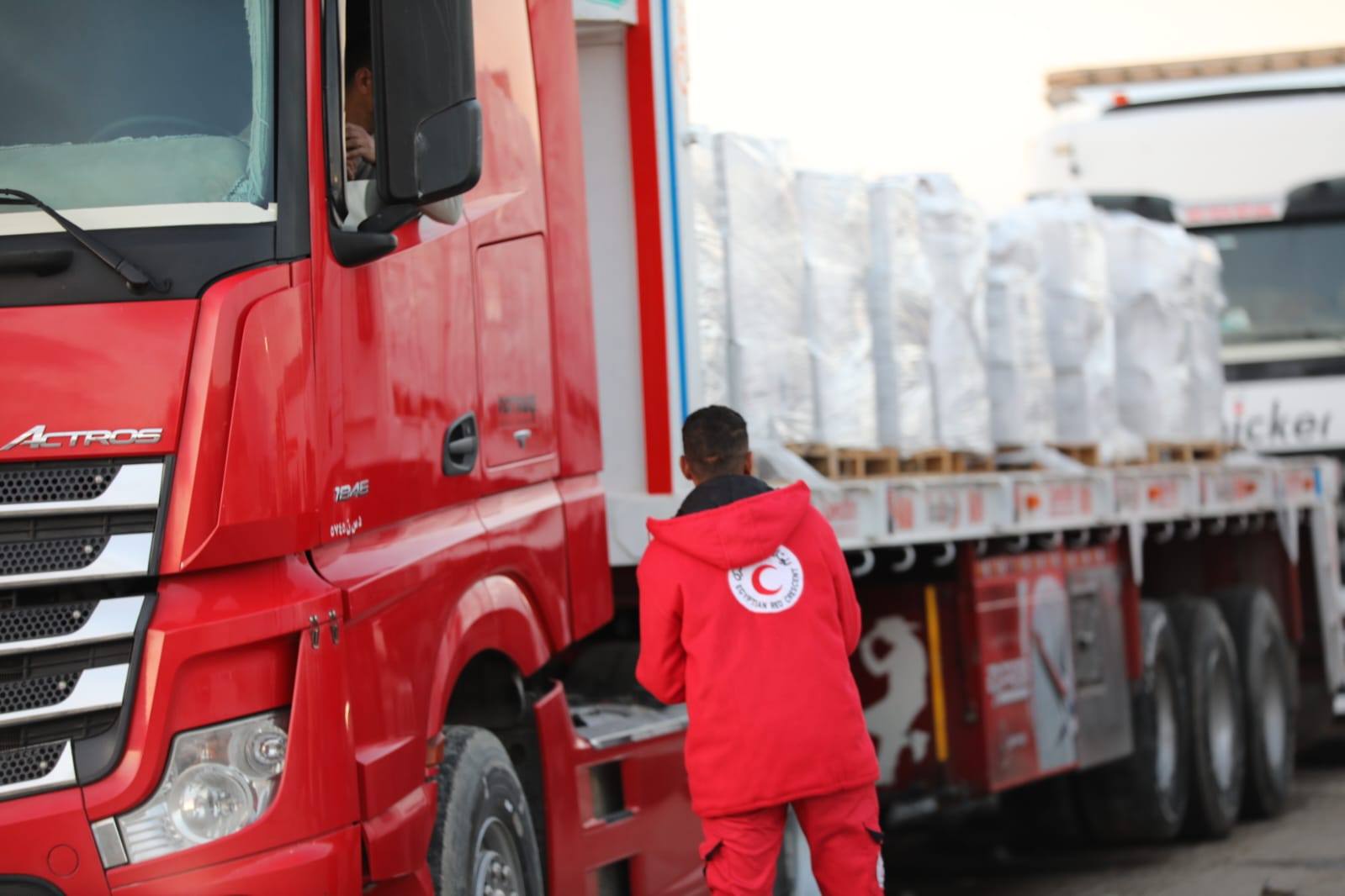 الهلال الأحمر يعزز مد غزة بـ7 آلاف طن مساعدات عبر قافلة «زاد العزة» 118