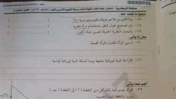 - حل امتحان العلوم تالتة إعدادي 2026 محافظة الإسكندرية