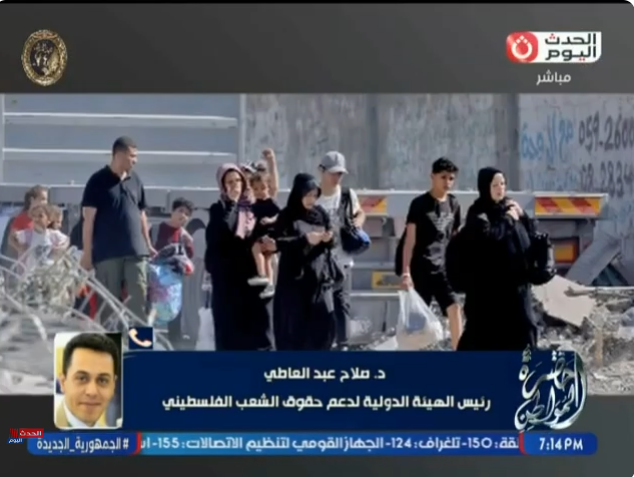 واختتم رئيس الهيئة الوطنية لدعم حقوق الشعب الفلسطيني، بالتأكيد على أن المرحلة الثانية من اتفاق شرم الشيخ تمثل فرصة حقيقية لإنقاذ غزة من الكارثة الإنسانية، لكنها لن تنجح إلا بوجود إرادة دولية ضاغطة، تضع حدًا للانتهاكات الإسرائيلية، وتدعم حق الشعب الفلسطيني في الحياة والحرية والكرامة.
