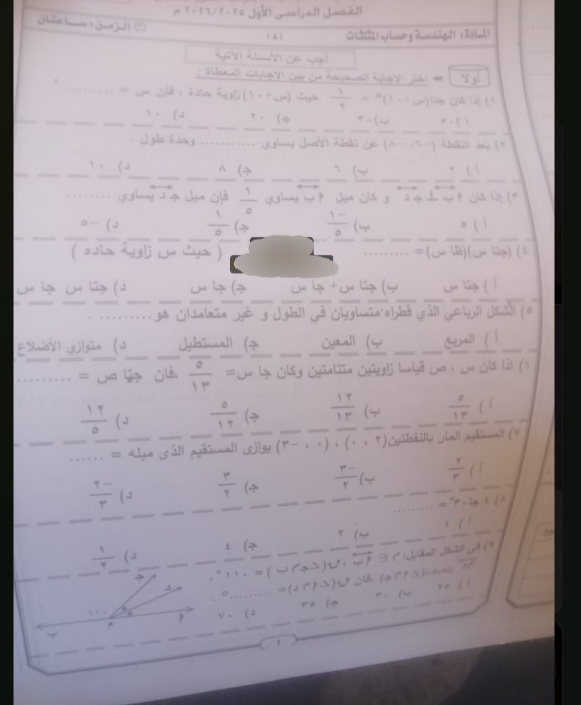 حل امتحان مادة الهندسة للصف الثالث الإعدادي الترم الأول 2026 الجيزة