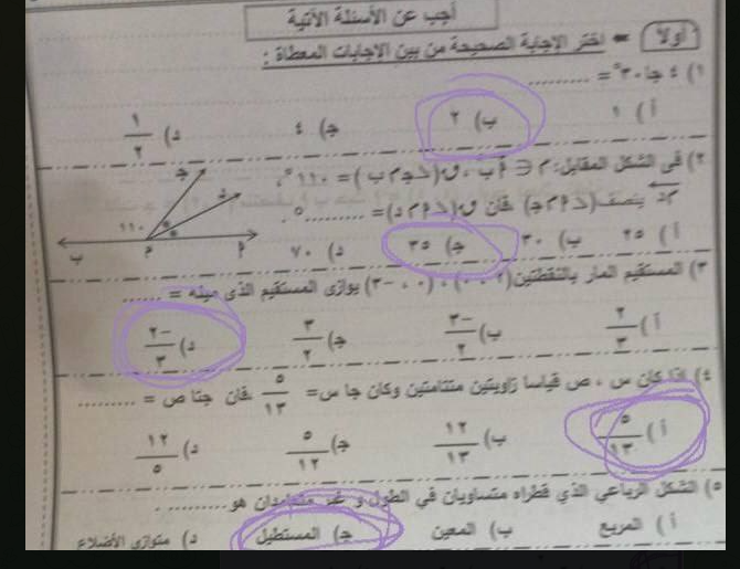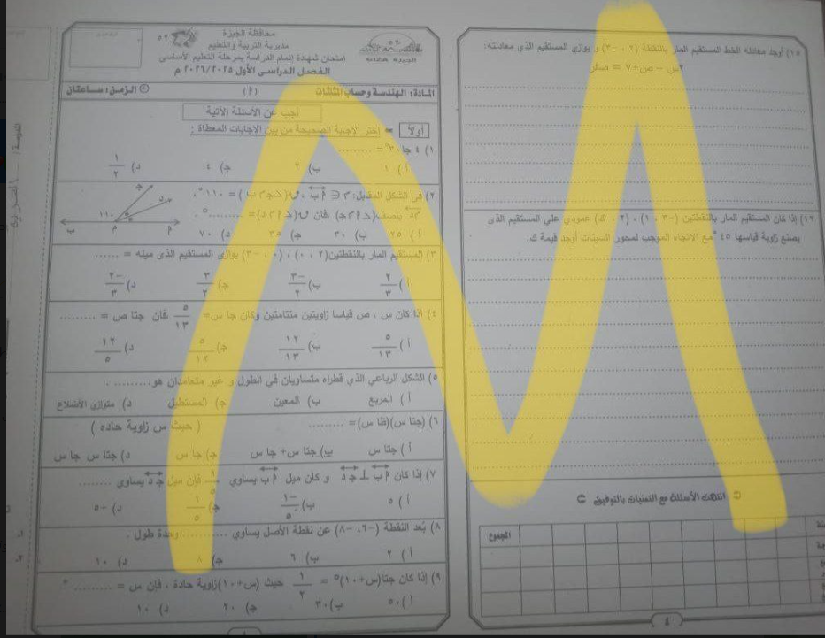 إجابة امتحان الهندسة للشهادة الإعدادية الترم الأول 2026 الجيزة