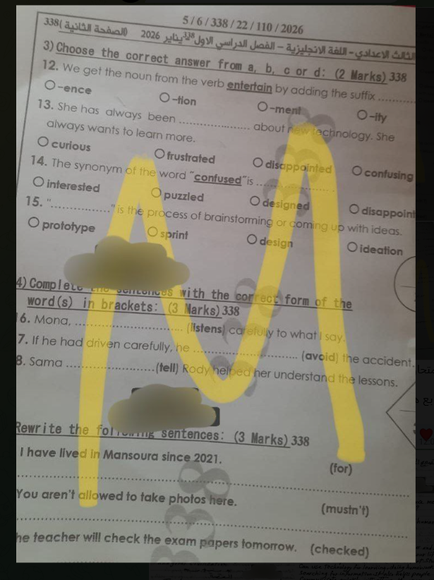 نقدم اجابة امتحان انجليزي للشهادة الإعدادية 2026 محافظة الدقهلية في إطار تغطية شاملة وحصرية لجميع امتحانات الصف الثالث الإعدادي 2026 الفصل الدراسي الأول.
