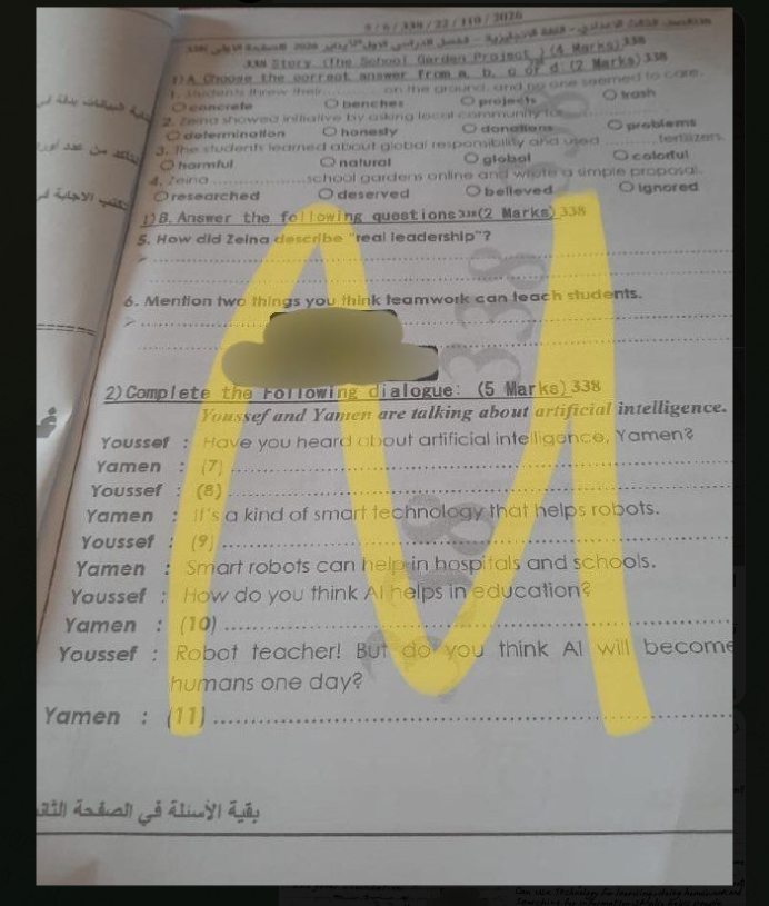 - اجابة امتحان انجليزي للشهادة الإعدادية 2026 محافظة الدقهلية