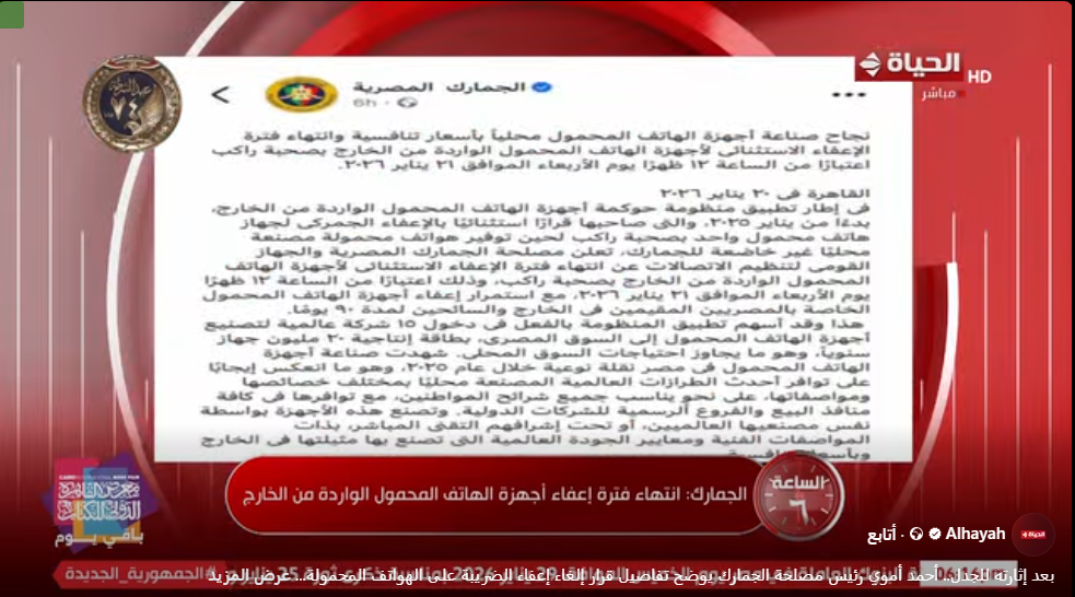 الجمارك: جذب 15 شركة عالمية لإنتاج الهواتف داخل مصر| فيديو