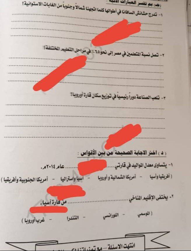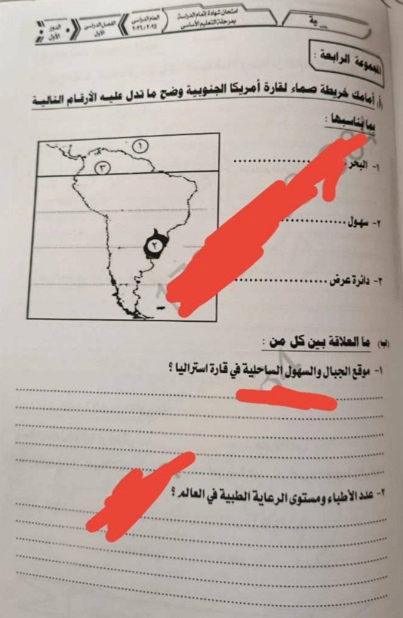 - إجابة امتحان الدراسات للشهادة الإعدادية ترم أول 2026