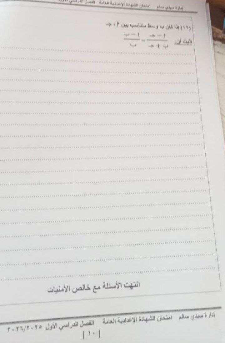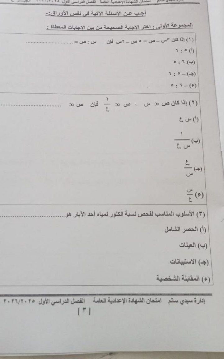 - امتحان مادة الجبر والإحصاء للشهادة الإعدادية ترم أول 2026 كفرالشيخ
