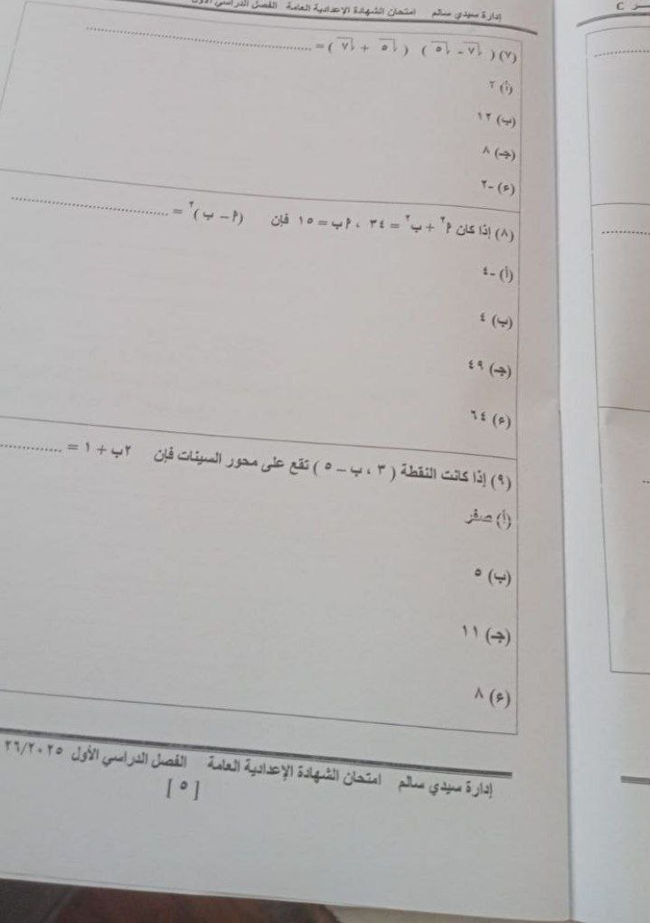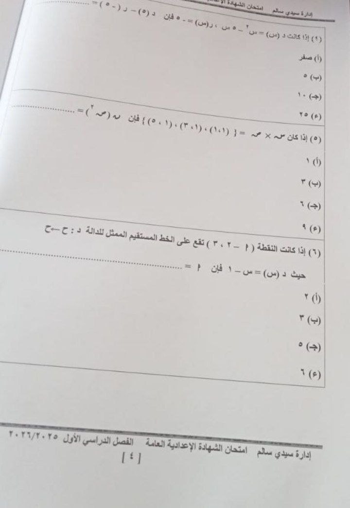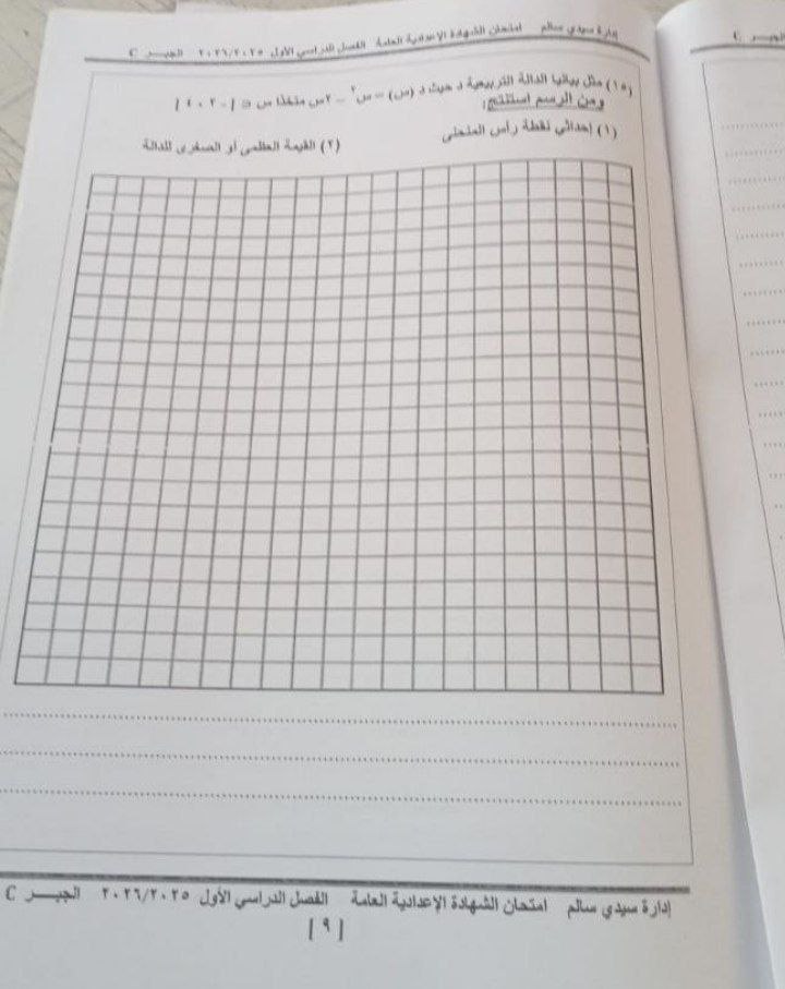 - امتحان مادة الجبر والإحصاء للشهادة الإعدادية ترم أول 2026