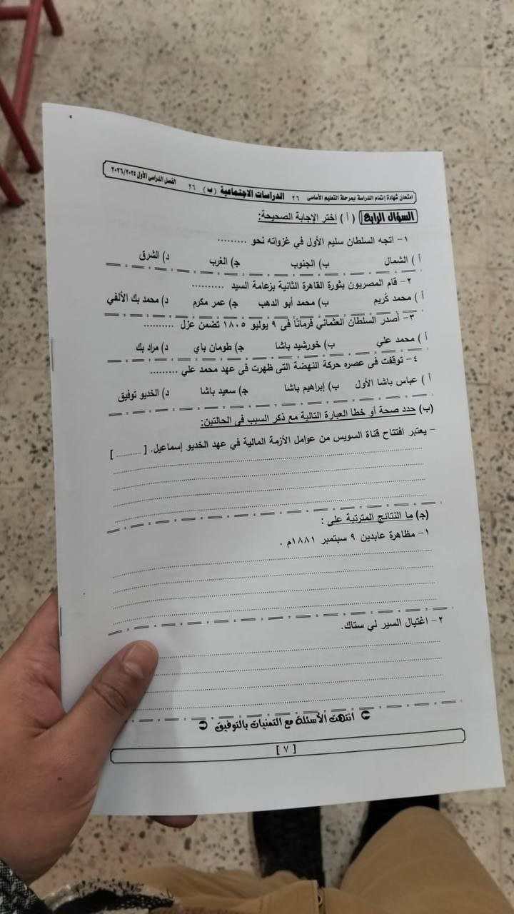 تداول امتحان الدراسات للشهادة الإعدادية الترم الأول 2026 الجيزة