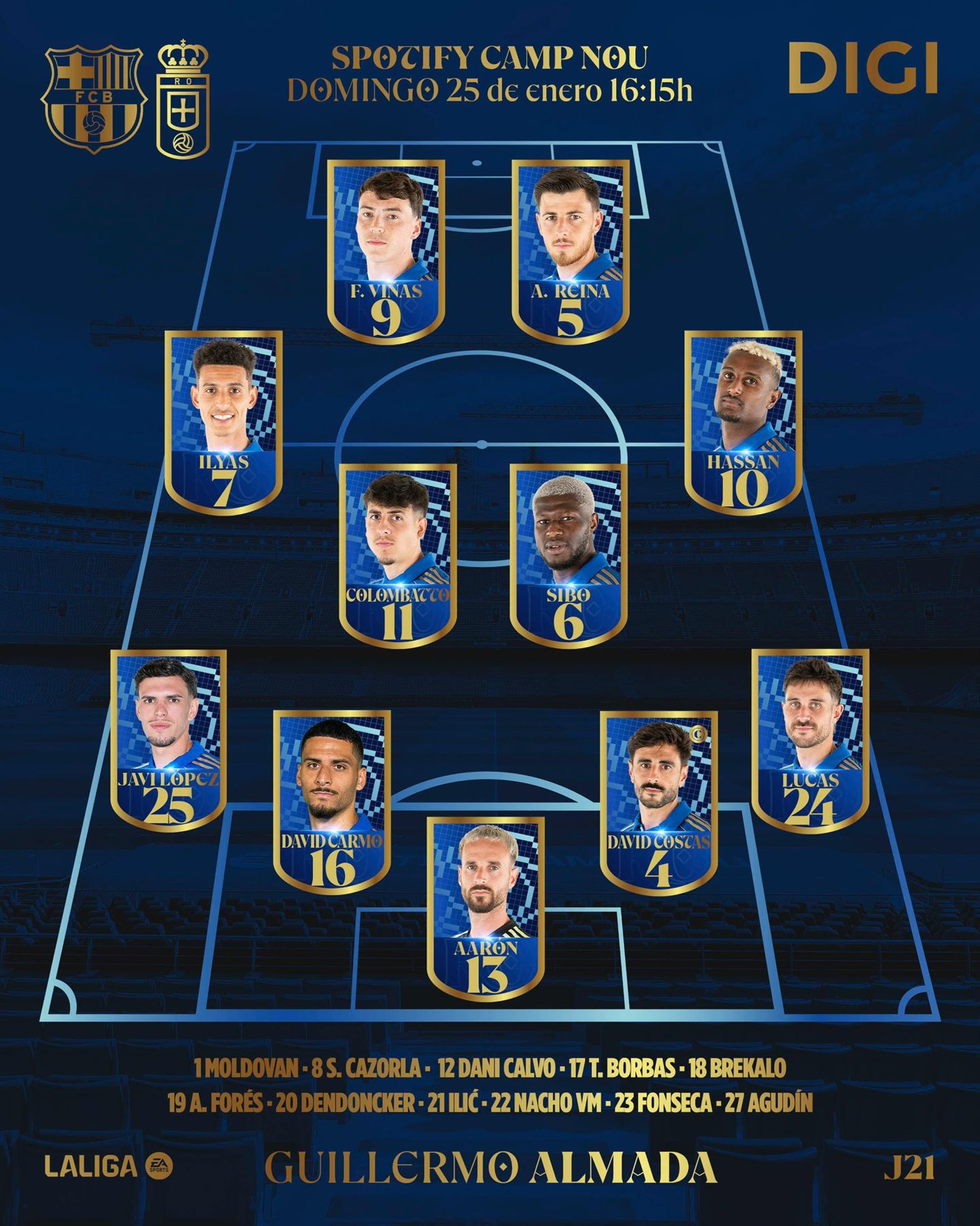 من جانبه، أعلن هانزى فليك، المدير الفنى نادى برشلونة، تشكيل برشلونة ضد ريال أوفييدو، الذي يضم في صفوفه اللاعب المصري هيثم حسن، فى الخامسة والربع مساءً على ملعب «كامب نو»، ضمن منافسات الجولة الـ21 من الدوري الإسباني، في ظل الصراع المحتدم مع غريمه التقليدي ريال مدريد على صدارة الليجا.