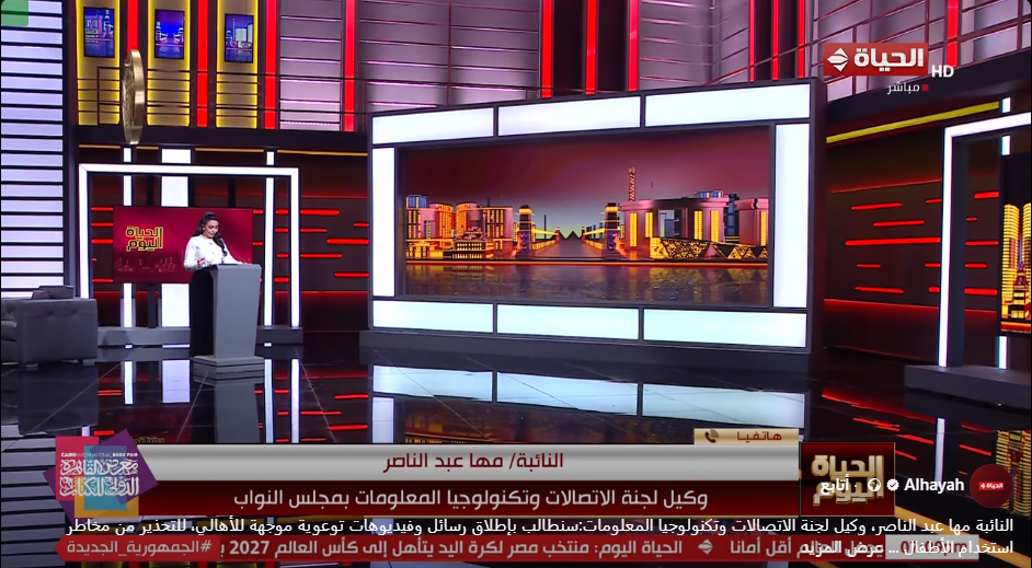 وأكدت مها عبد الناصر، أن لجنة الاتصالات وتكنولوجيا المعلومات تضع قضية "الأمن المعلوماتي للأسرة" على رأس أولوياتها خلال الفترة المقبلة، مشيرة إلى أن التطور التكنولوجي المتسارع يجب أن يوازيه تطور مماثل في الوعي المجتمعي.