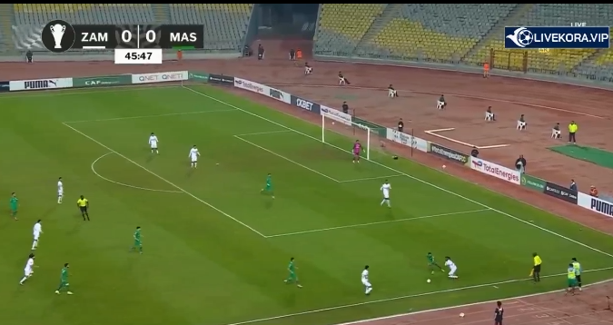الدقيقة 25: ركلة حرة للمصري وضربة رأس من خالد صبحي يتصدى لها حارس الزمالك ببراعة لكن الحكم يحتسبها تسللا.