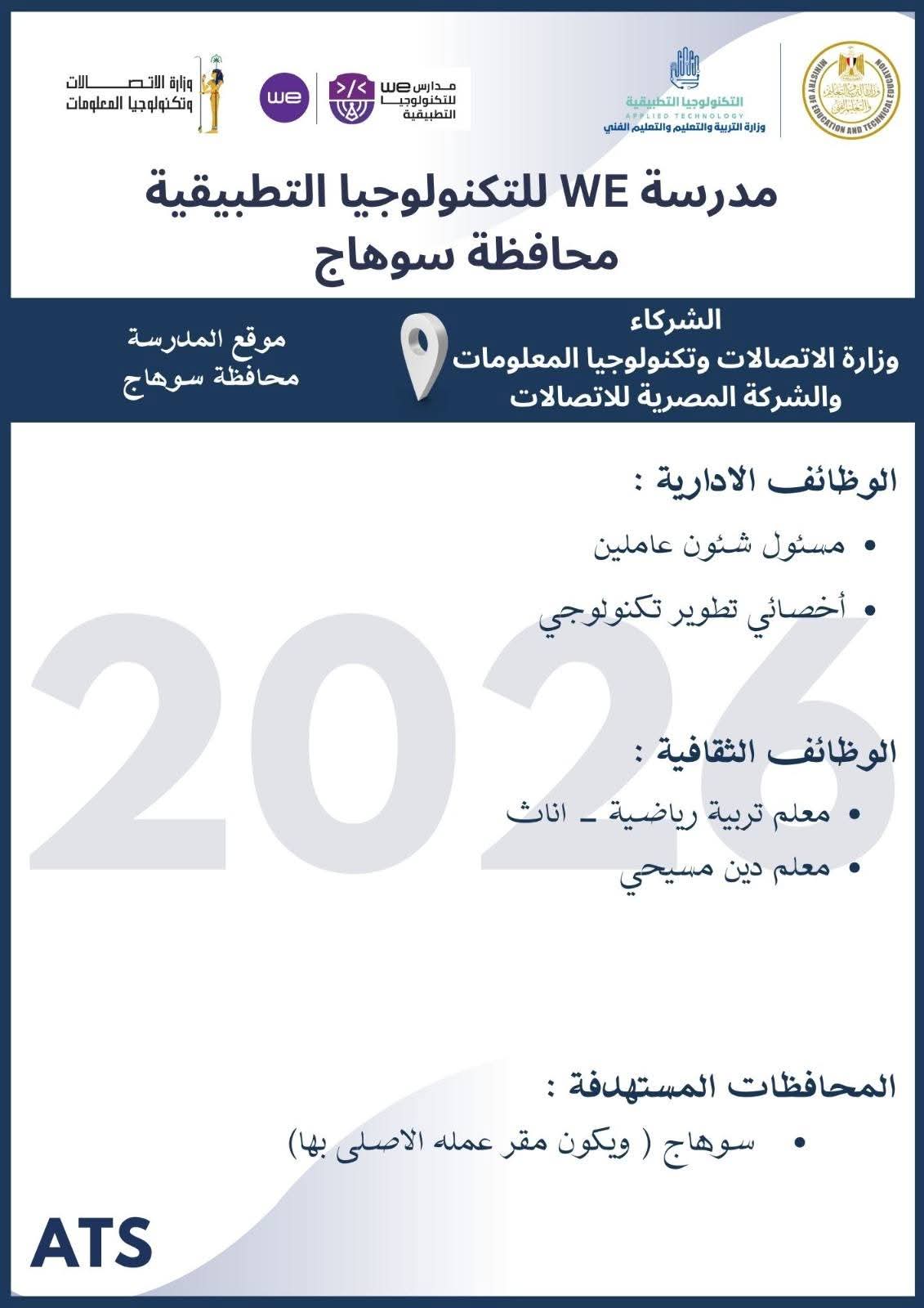 موعد ورابط التقديم للالتحاق بفريق عمل مدارس التكنولوجيا التطبيقية