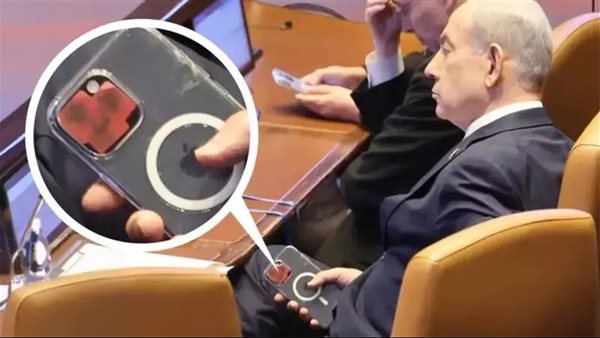 وأظهرت الصور نتنياهو داخل الكنيست الإسرائيلي، جالسًا على طاولة الحكومة وبيده هاتف من نوع "آيفون"، فيما وضعت أشرطة لاصقة على كاميرات الهاتف، ما أثار تساؤلات حول سبب هذا الإجراء.