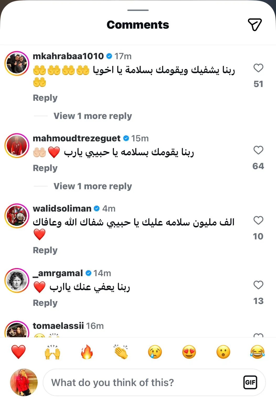 نشر مؤمن زكريا، نجم الأهلي والزمالك السابق، صورة له عبر صفحته على "إنستجرام" من داخل إحدى المستشفيات، وسط تفاعل واسع من الجماهير المصرية التي تمنّت له الشفاء العاجل ودوام الصحة والعافية.