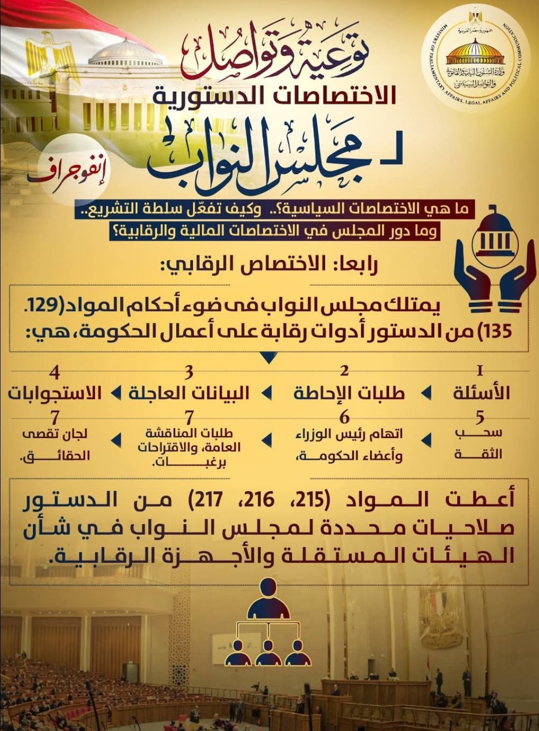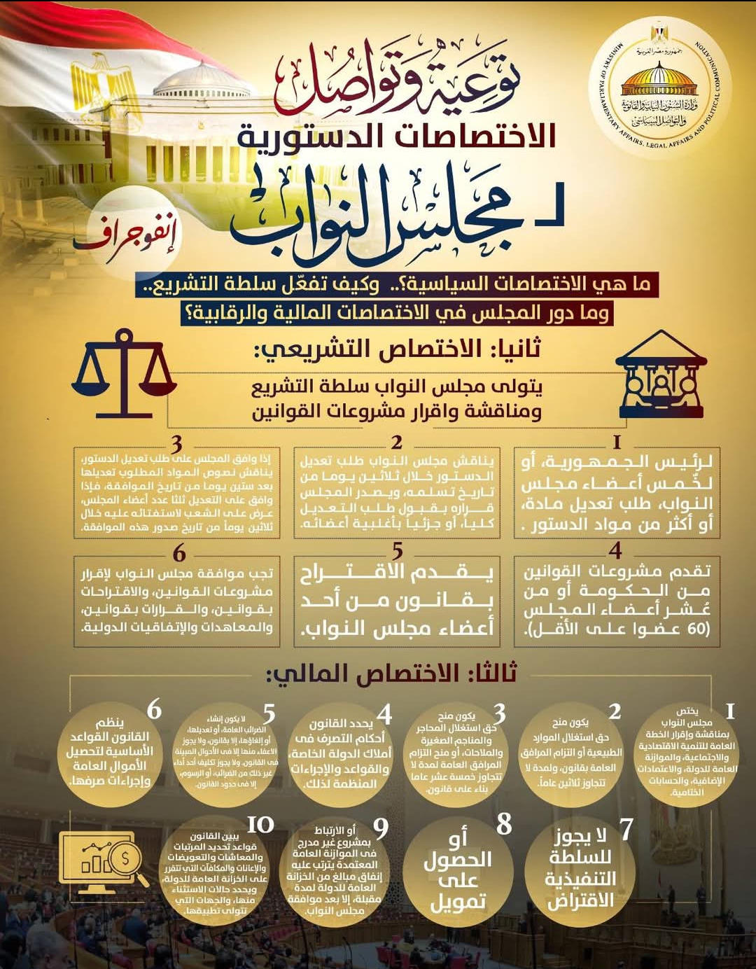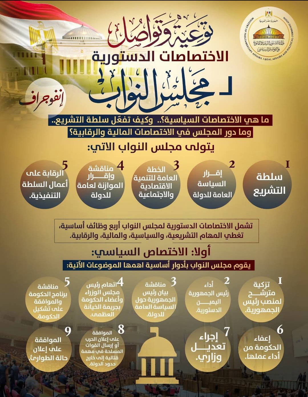 وزارة الشؤون النيابية توضح الاختصاصات الدستورية لمجلس النواب (إنفوجراف)