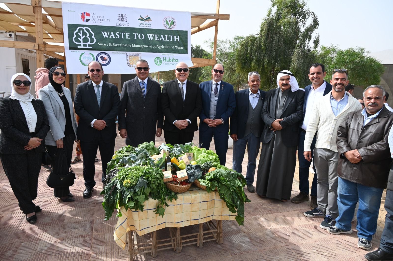 أطلقت الجامعة البريطانية في مصر، برئاسة الدكتور محمد لطفي رئيس الجامعة، مشروعًا بحثيًا رائدًا لتحويل المخلفات الزراعية إلى علف حيواني، ضمن مبادرة «Waste to Wealth»، وذلك بمدينة نويبع بمحافظة جنوب سيناء، بحضور اللواء الدكتور خالد مبارك محافظ جنوب سيناء، والدكتور عمرو عزت سلامة الأمين العام لاتحاد الجامعات العربية، وعضو مجلس الشيوخ الدكتور محمد لطفي رئيس الجامعة البريطانية في مصر، إلى جانب عدد من القيادات التنفيذية، وممثلي الجهات المعنية، والباحثين، وأبناء المجتمع المحلي.