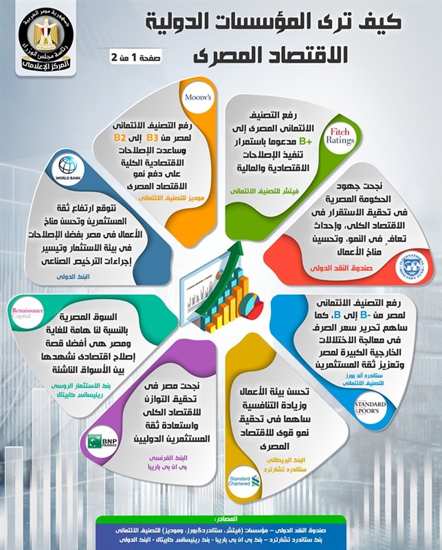 بالانفوجراف...مجلس الوزراء يبرز الإشادات الدولية بالاقتصاد المصري