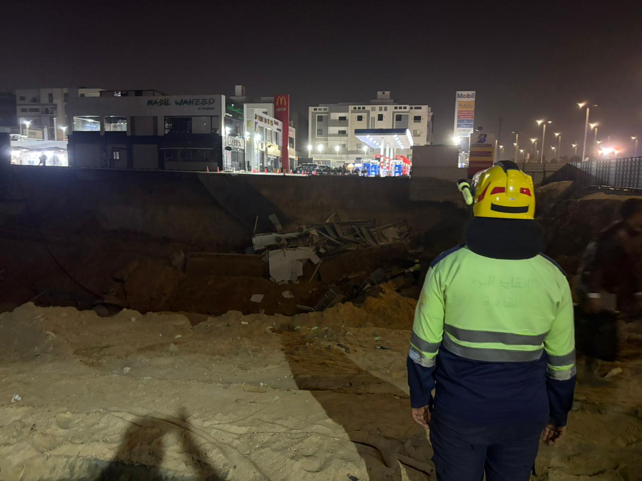 تلقت غرفة العمليات بلاغًا بوقوع هبوط أرضي أمام محطة وقود موبيل في التجمع.