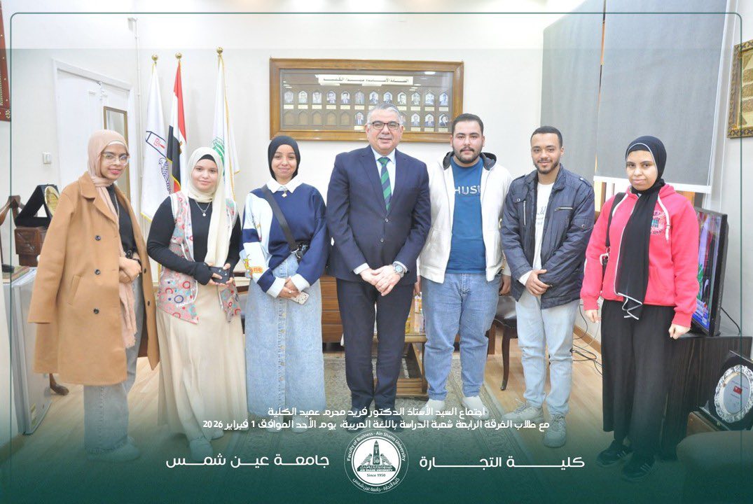 استقبل الدكتور فريد محرم الجارحي، عميد كلية التجارة جامعة عين شمس، أمس الأحد الموافق 1 فبراير 2026، وفدًا ممثلًا لطلاب المستوى الرابع (المجموعة الرابعة – شعبة اللغة العربية)، على خلفية الشكاوى المقدمة بشأن أداء امتحان مادة الإحصاء المتقدم، في خطوة تعكس تبني إدارة الكلية لسياسة الحوار المباشر والاستماع الفعّال لمطالب الطلاب.