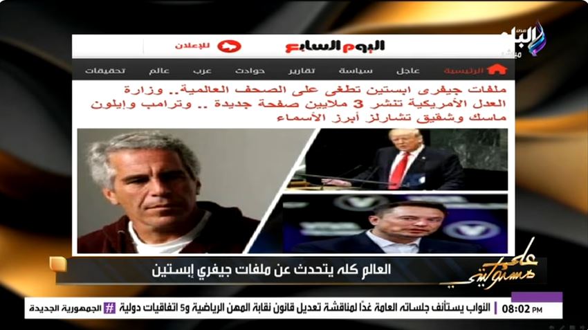 عرض أحمد موسى، خلال برنامجه «على مسؤوليتي» المذاع على قناة صدى البلد، تغريدة له نشرها على منصة إكس، قال فيها: "ملفات جيفري إبستين فضحت كبار الساسة ورجال المال والأعمال والمشاهير"، مؤكدًا أن هذه الوثائق كشفت علاقات وتواطؤات محتملة بين إبستين ومجموعة من الشخصيات المهمة عالميًا، وأن الرئيس الأمريكي السابق دونالد ترامب صرح بأن إبستين لم يكن صديقًا له، بل كان يحاول التآمر عليه، مشيرًا إلى وجود صور ووثائق مع كبار الشخصيات السياسية، بما في ذلك نواب في الكونجرس أكدوا وجود علاقة محتملة بين إبستين والاستخبارات الأمريكية وجهاز الموساد الإسرائيلي.