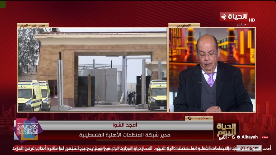 شدد أمجد الشوا، خلال مداخلة ببرنامج «الحياة اليوم» المذاع على قناة «الحياة»، على أن الجهود المصرية والموقف الثابت للدولة المصرية لعبا دورًا محوريًا في إعادة فتح المعبر في الاتجاهين، مؤكدًا أن القاهرة واصلت تحركاتها السياسية والدبلوماسية لضمان عدم الرضوخ للإملاءات الإسرائيلية.