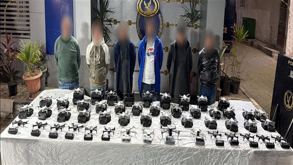 وبإرشاده، تم ضبط مصدر حصوله على الطائرة، وعددهم 5 أشخاص، وبحوزتهم 46 طائرة "درون" بدون ترخيص.