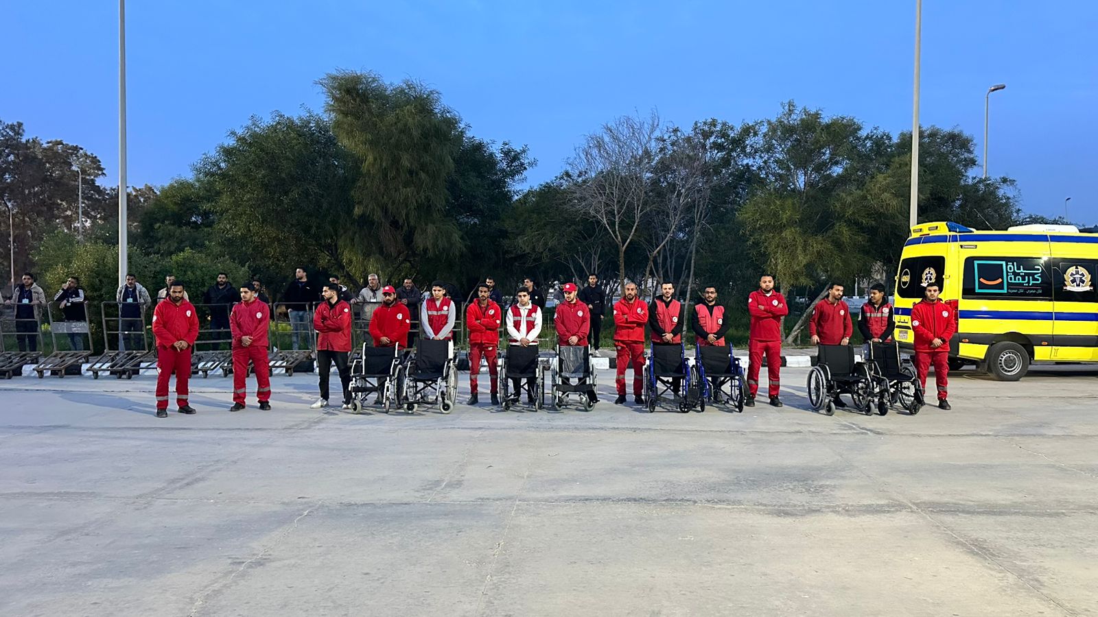 وعلى معبر رفح من الجانب المصري، يواصل الهلال الأحمر المصري جهوده الإنسانية، في استقبال وتوديع الدفعة السادسة من الجرحى والمرضى والمصابين الفلسطينيين الوافدين والمغادرين، ومرافقتهم في إنهاء إجراءات العبور.