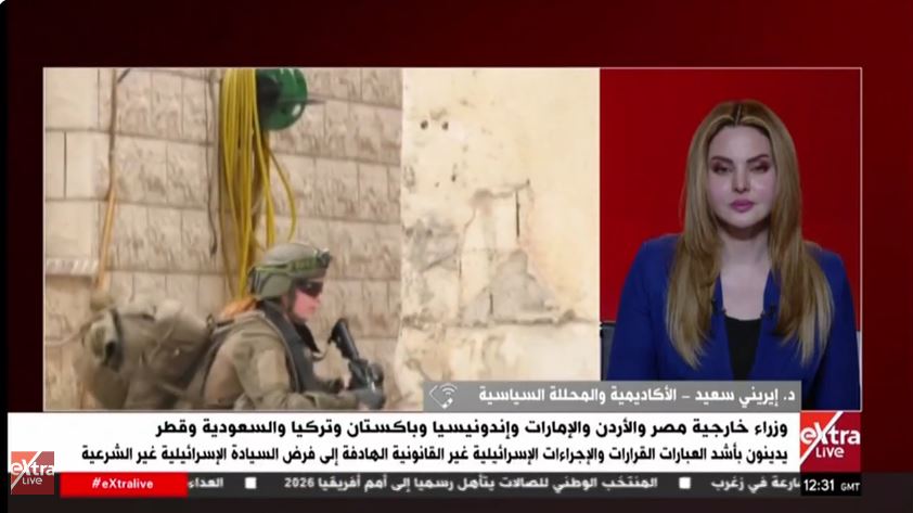 وأوضحت إيريني سعيد، خلال مداخلة هاتفية على قناة «إكسترا لايف»، أن إدانة وزراء خارجية مصر وسبع دول عربية وإسلامية للقرارات والإجراءات الإسرائيلية غير القانونية تعكس حالة من التوافق العربي والإسلامي، مؤكدة أن هذه المواقف لا تحمل بعدًا سياسيًا فقط، بل تمتلك فاعلية حقيقية على أرض الواقع، وتسهم في خلق حشد سياسي ودبلوماسي داعم للقضية الفلسطينية.