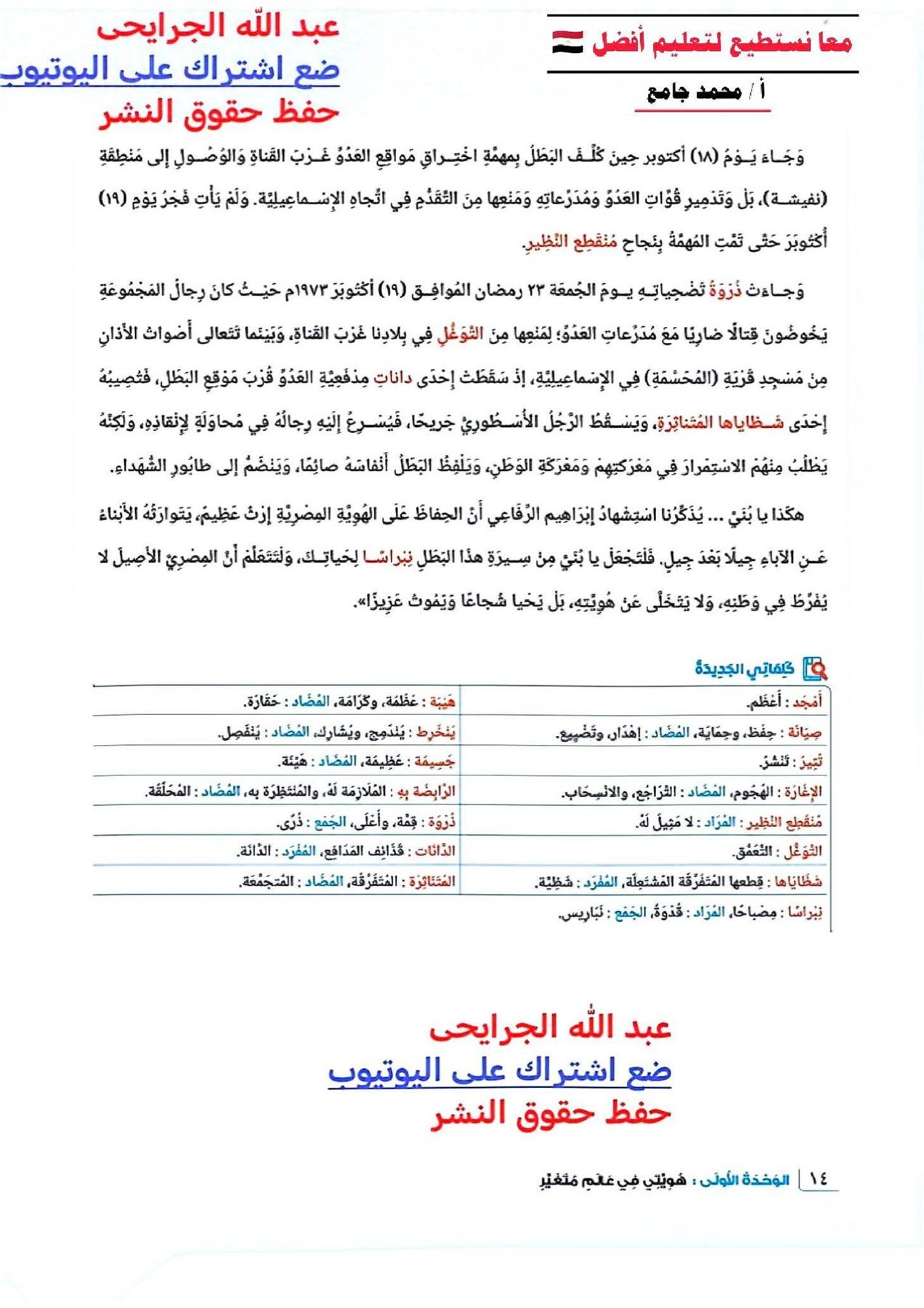 إجابة تقييم الأسبوع الأول عربي لتانية إعدادي 2026