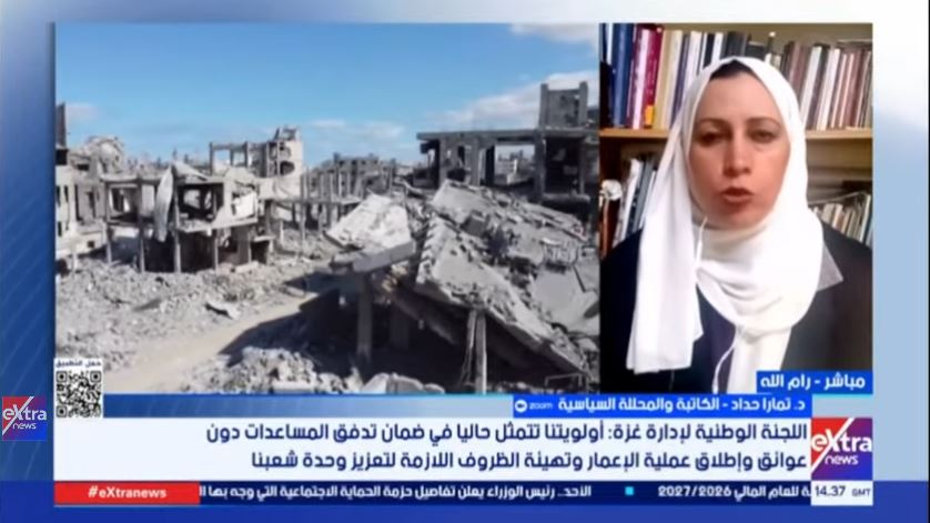 وأشارت تمارا حداد، إلى أن هذه الظروف تجعل من عملية إعادة الإعمار تحديًا كبيرًا، إذ تحتاج إلى توازن بين المساعدات الإنسانية والحفاظ على حقوق السكان الفلسطينيين، مع ضرورة ضمان عدم استغلال هذه الموارد في تعزيز السيطرة الأمنية على الأرض.
