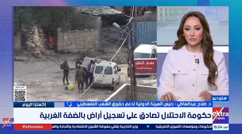 وأوضح صلاح عبدالعاطي، في مداخلة ببرنامج "إكسترا اليوم" المذاع على قناة إكسترا نيوز، أن القرار الإسرائيلي يهدف إلى تحويل السيطرة المؤقتة على الأراضي إلى سيطرة دائمة، بما يسمح بضم نحو 62% من الضفة الغربية، إضافة إلى تعزيز قوانين سابقة تمنح إسرائيل السيطرة الكاملة على الأراضي والقدس.