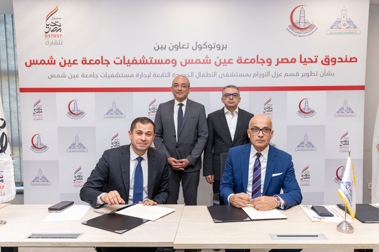 وقع الدكتور محمد ضياء زين العابدين رئيس جامعة عين شمس، ممثلًا عن جامعة عين شمس ومستشفياتها، وتامر محمد عبدالفتاح ممثلًا عن صندوق تحيا مصر بروتوكول تعاون لتطوير غرف عزل الأورام بمستشفى الأطفال الجديدة التابعة لإدارة مستشفيات جامعة عين شمس، وذلك في خطوة تعكس تكامل جهود مؤسسات الدولة والمجتمع المدني لدعم القطاع الصحي.