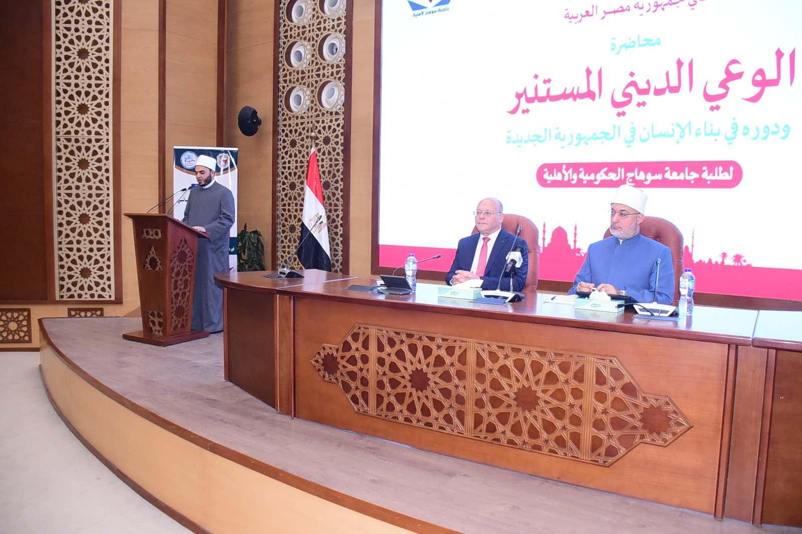 وأكد رئيس جامعة سوهاج، أن الجمهورية الجديدة لا تقوم على مشروعات البنية التحتية فحسب، بل تعتمد في جوهرها على تنمية وبناء الإنسان وترسيخ قيم الانتماء، وأن جامعة سوهاج تؤمن بأن تنمية البشر تسبق تنمية الحجر، وأن التعاون مع دار الإفتاء يعزز من وعي الطلاب، ويسهم في بناء شخصية متوازنة قادرة على الإسهام الإيجابي في المجتمع.