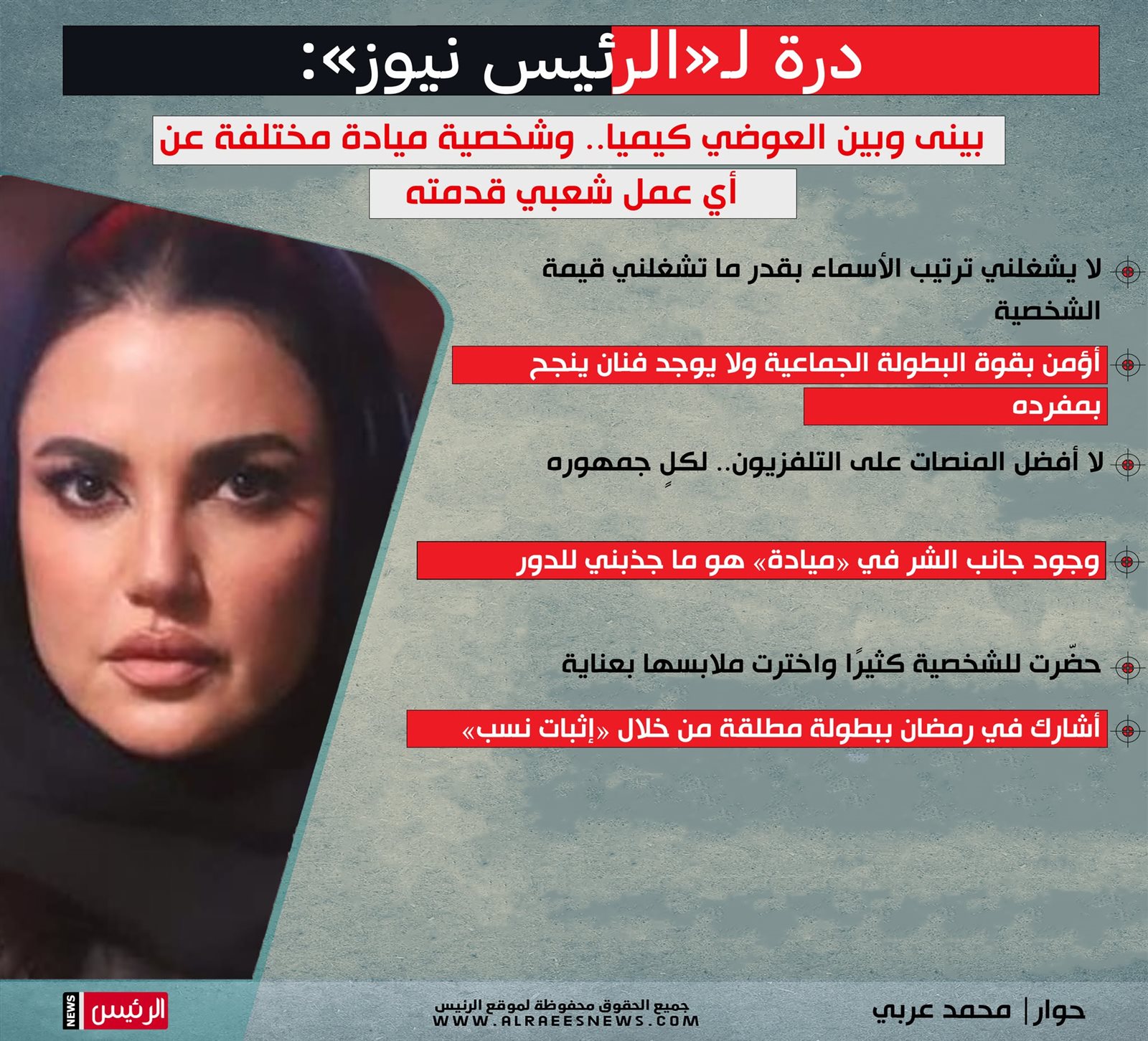 درة لـ«الرئيس نيوز»: بينى وبين العوضي كيميا.. وشخصية ميادة مختلفة عن أي عمل شعبي قدمته| حوار