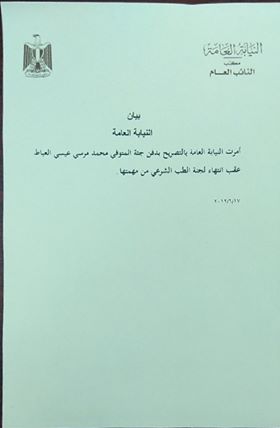 المستشار نبيل صادق النائب العام قد أصدر بيانًا حول وفاة محمد مرسي أثناء حضوره