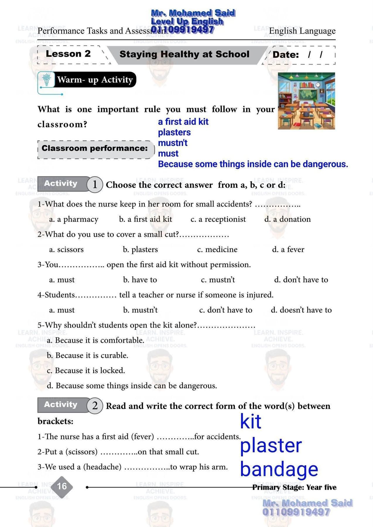 - تحديد الصف وهو الصف الخامس الابتدائي.