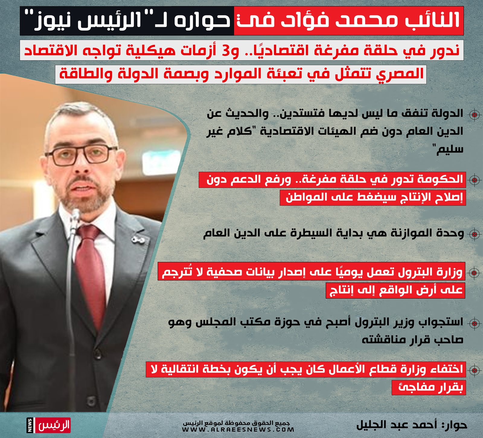 النائب محمد فؤاد: ندور في حلقة مفرغة اقتصاديًا.. و3 أزمات هيكلية تواجه الاقتصاد المصري تتمثل في تعبئة الموارد وبصمة الدولة والطاقة (حوار)