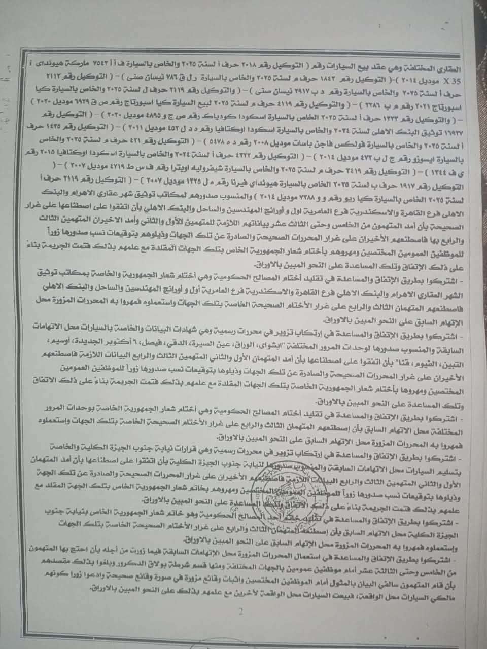 وأوضحت الأوراق أن السيارات بيعت لبعض المشترين حسني النية وآخرين سيئي النية، رغم علم بعض المتهمين بأن تلك السيارات متحصلة من جرائم تزوير وتقليد أختام واستعمال محررات مزورة.