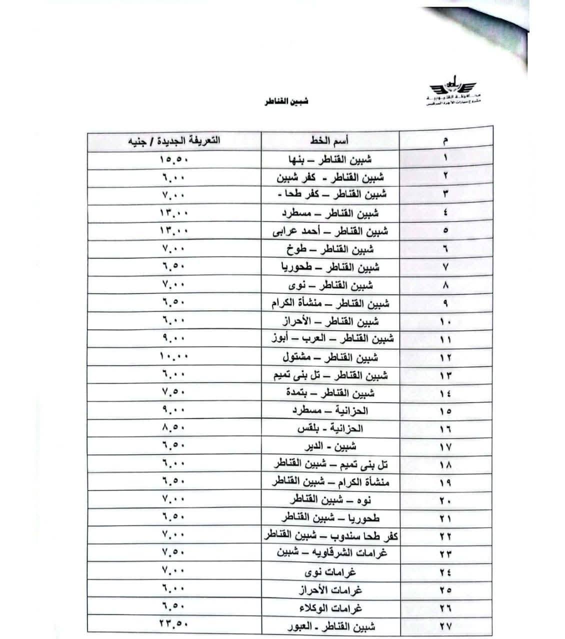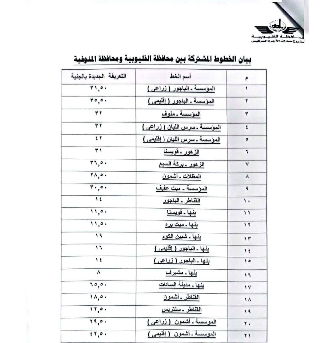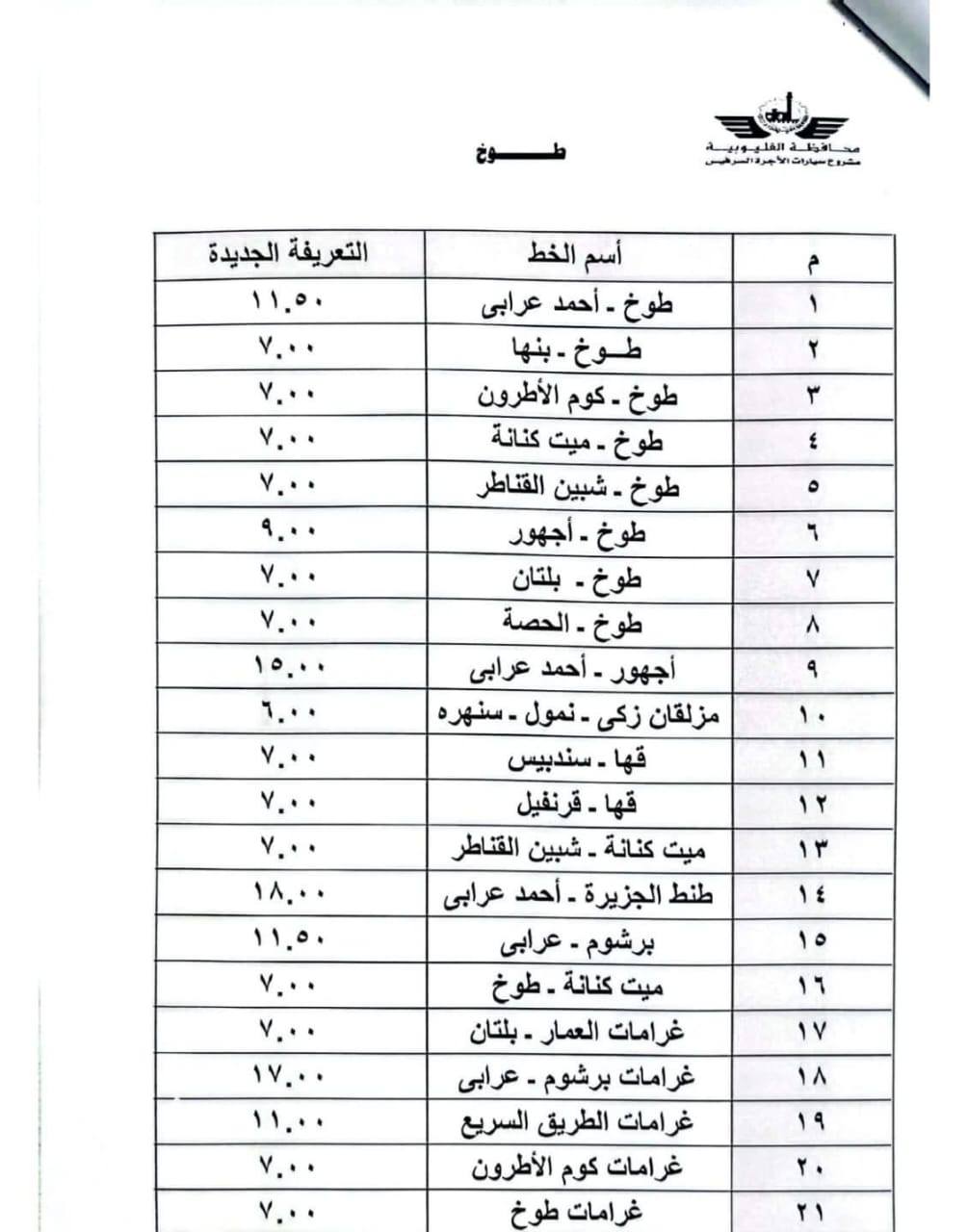 عقب تحريك أسعار الوقود.. محافظ القليوبية يعتمد تعريفة الركوب الجديدة (صور)