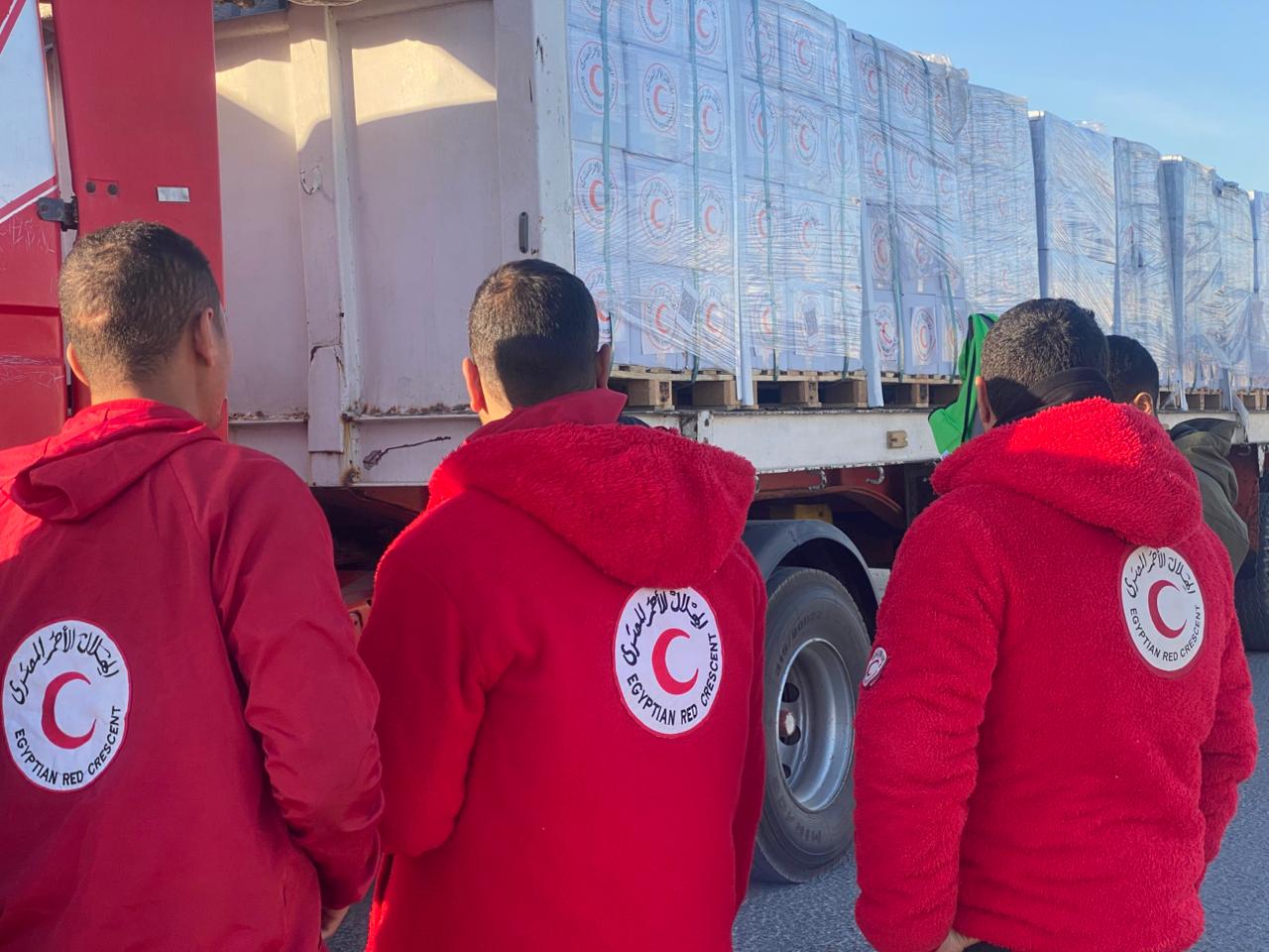 الهلال الأحمر المصري يدفع بـ76 ألف سلة غذائية عبر «زاد العزة» 154 إلى غزة