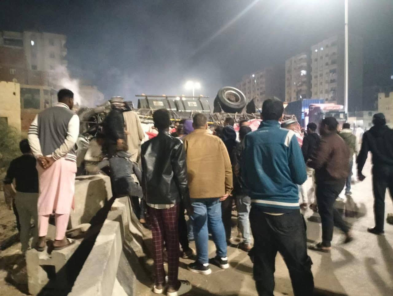 تفاصيل حادث تصادم مروع بين سيارتي نقل وأخرى ملاكي أعلى دائري المريوطية (صور)