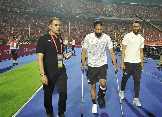 بالصور.. "جنش" يؤازر المنتخب ماشيا على "عكاز"