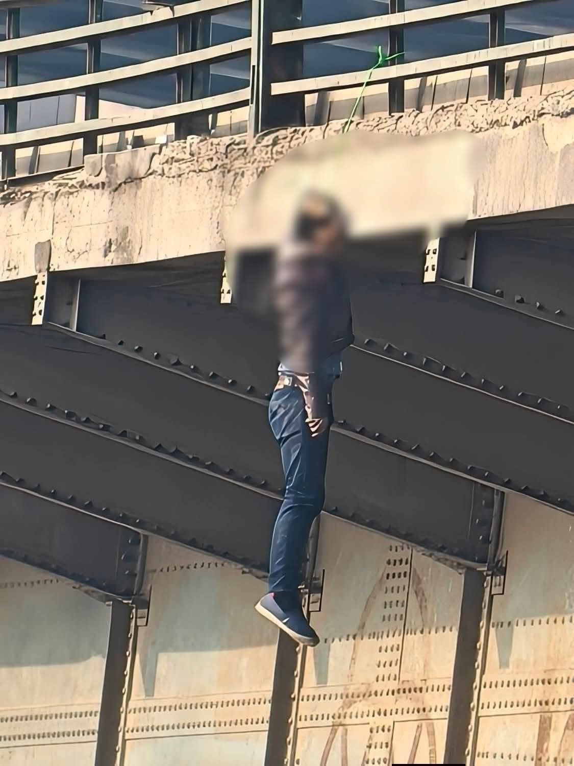 فيديو شخص يشنق نفسه أعلى كوبري المظلات في شبرا الخيمة تم تداوله بشكل كبير على جميع منصات التواصل الاجتماعي في مشهد صادم لشخص شنق نفسه بحبل غسيل لونه أخضر وهو يرتدي جاكيت من الجيلد لونه بني وبنطالون أسود اللون في ريعان الشباب هو معلق وكانه قد شنق نفسه أو وقع بالخطأ ليس ظهرا أبدا.