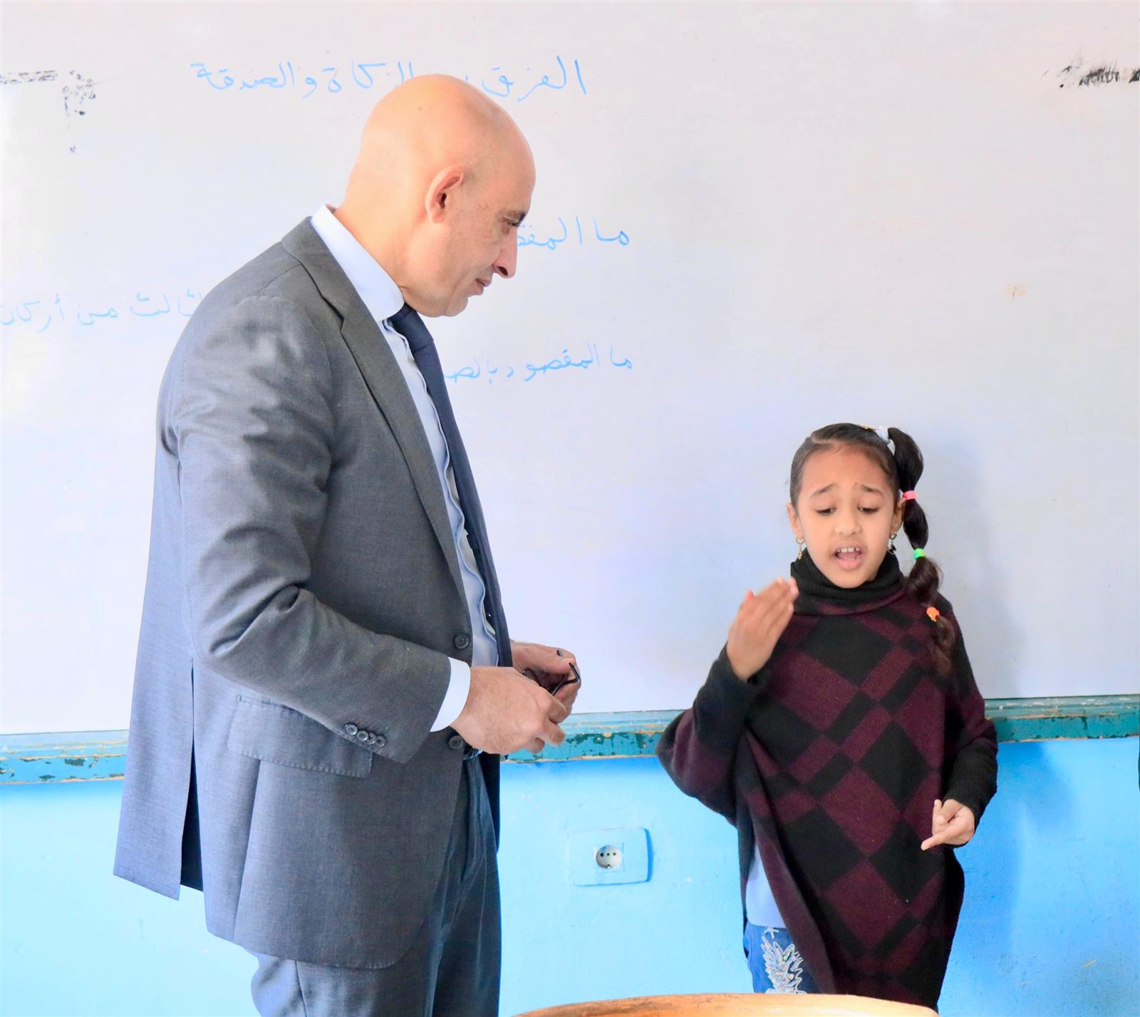 والتقى  الوزير بالطالبة جنا، المتميزة في إلقاء الشعر، حيث استمع إلى إلقائها إحدى القصائد عن الأم، مشيدًا بموهبتها وأدائها المتميز.