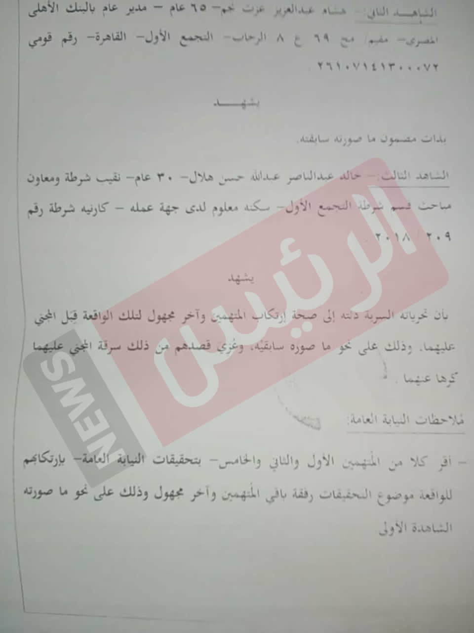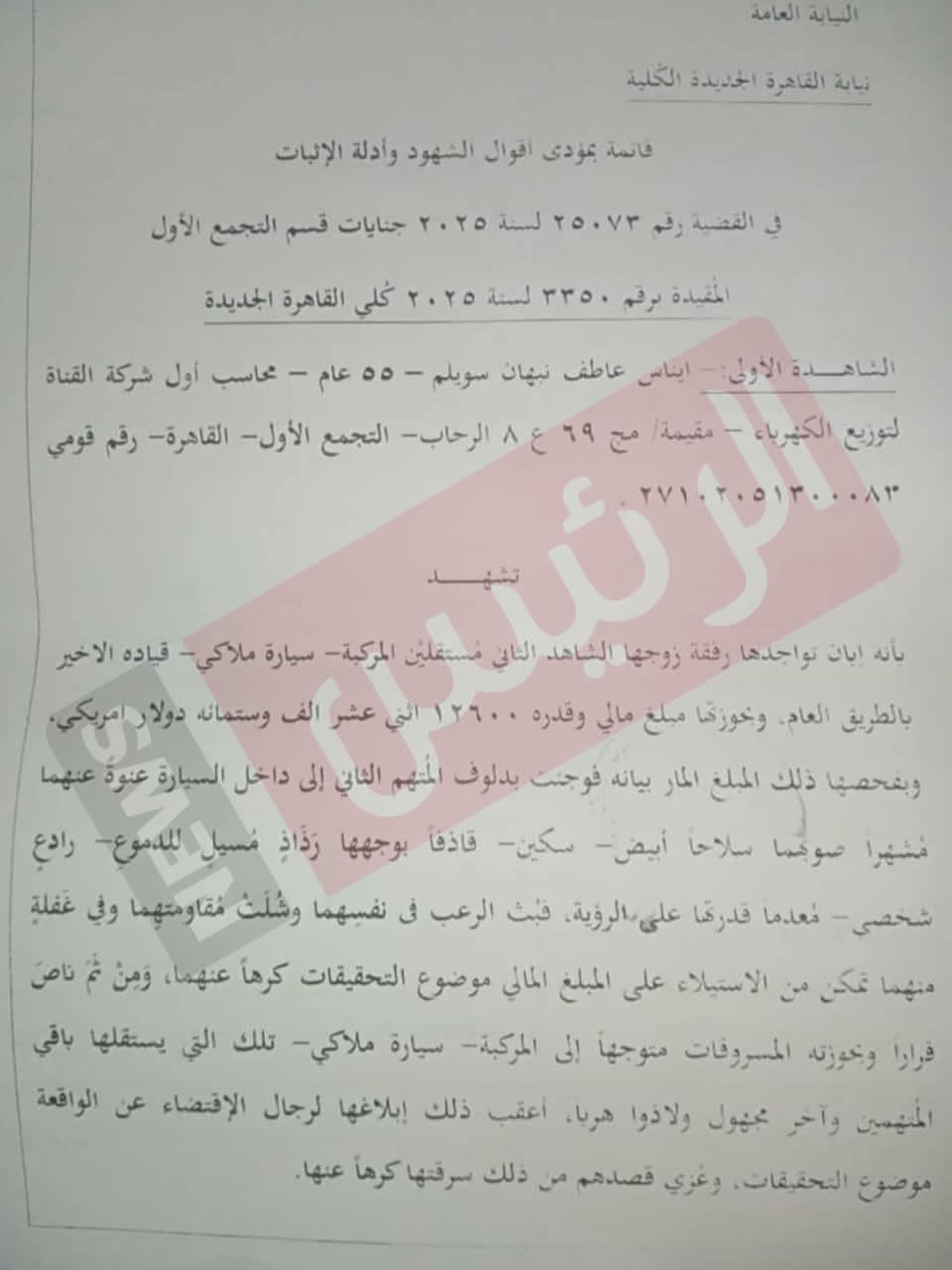 خاص| نص التحقيقات تكشف كواليس سرقة 12.6 ألف دولار من مدير بنك وزوجته بالإكراه في التجمع (مستندات)